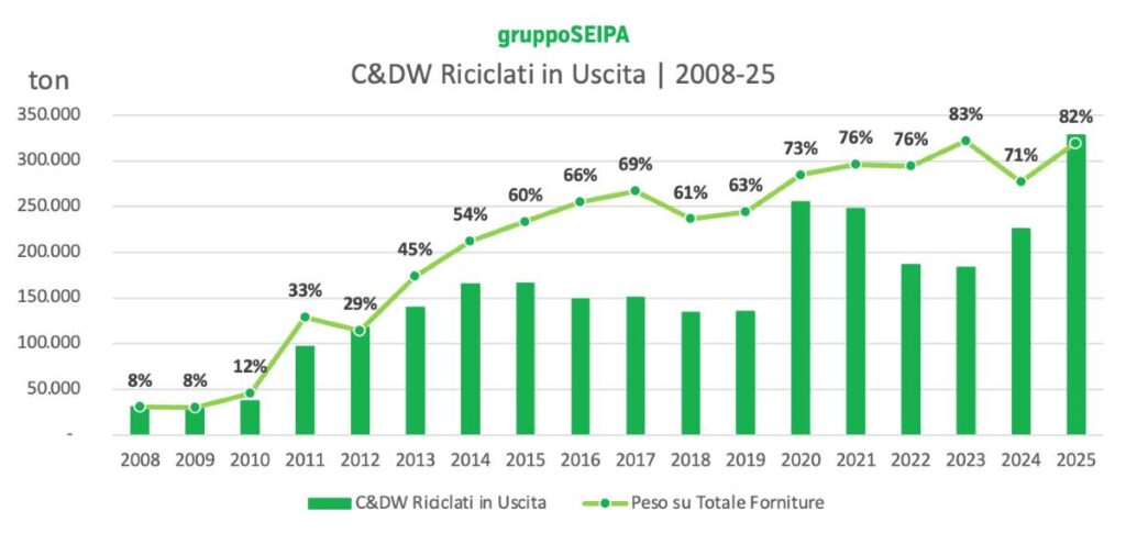 Il percorso industriale del Gruppo Seipa mostra come questa trasformazione possa avvenire su scala crescente, integrando recupero, produzione e reintroduzione dei materiali nel mercato delle costruzioni.