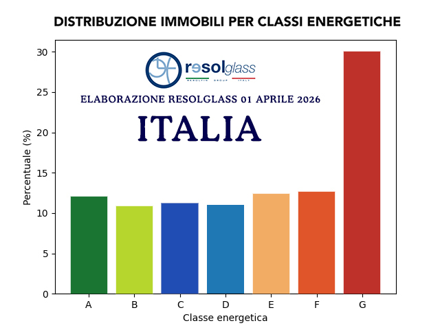 L’elaborazione Resolglass mette a disposizione un dataset completo con la distribuzione delle classi energetiche per: